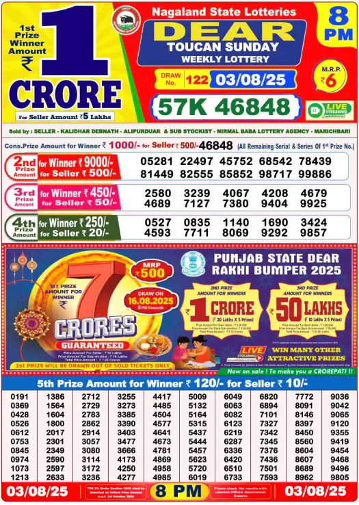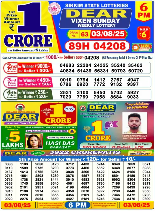 Sambad Lottery Day Result 6 PM 3.8.2025. Free download Nagaland Dear Lottery Sambad 6 PM Day Result Online. Lottery Sambad Day Result 6 PM 3.8.2025.