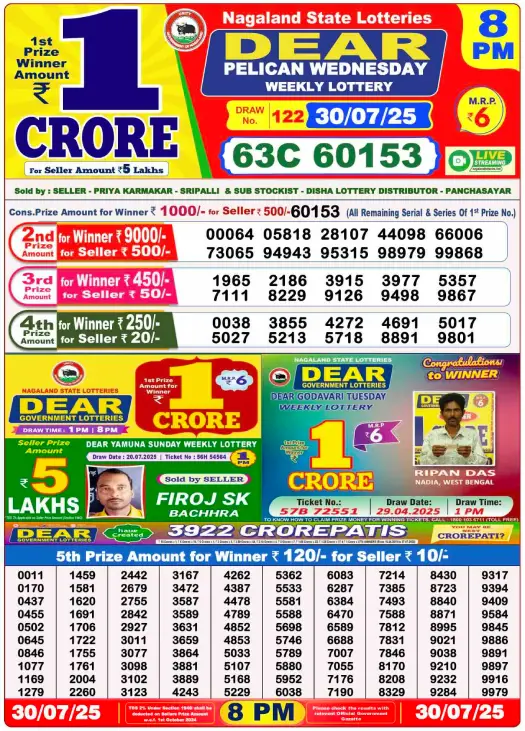 Daily Lottery Sambad Evening Result 8 PM 30/7/2025. Dear Lottery Sambad Evning Result 8 PM live online 30.7.2025. Nagaland Lottery Evening Result 30.7.2025. Lottery Sambad Result 30.7.2025.
