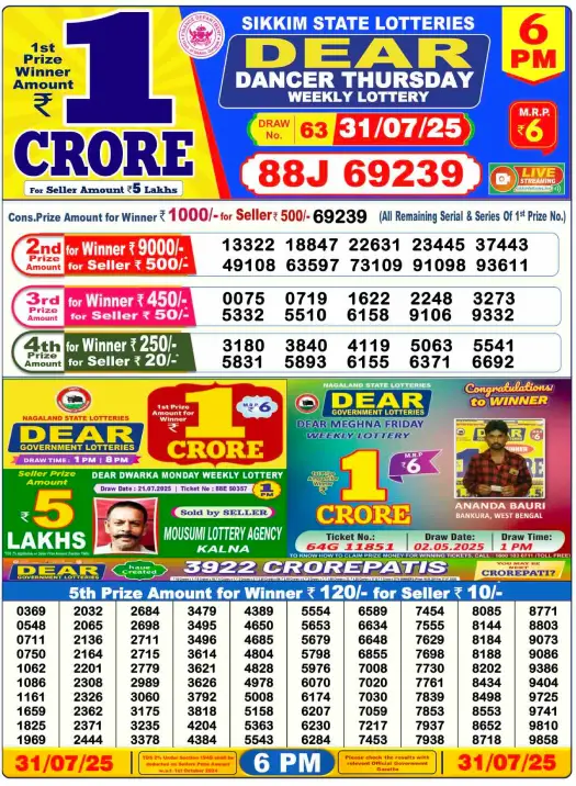 Sambad Lottery Day Result 6 PM 31.7.2025. Free download Nagaland Dear Lottery Sambad 6 PM Day Result Online. Lottery Sambad Day Result 6 PM 31.7.2025.