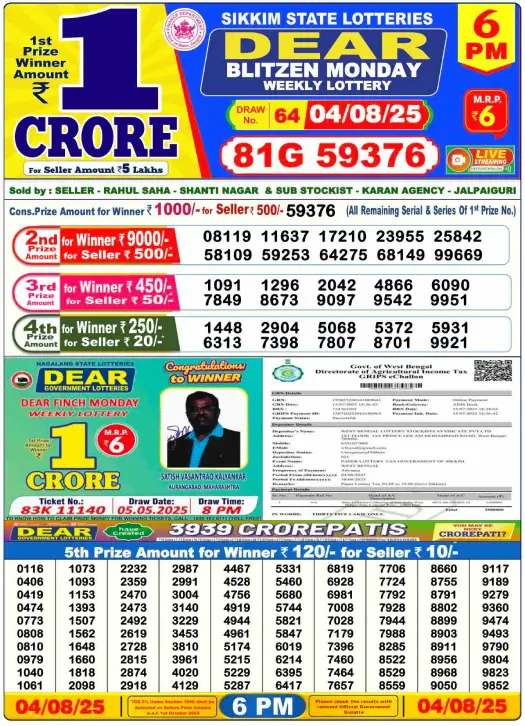 Sambad Lottery Day Result 6 PM 4.8.2025. Free download Nagaland Dear Lottery Sambad 6 PM Day Result Online. Lottery Sambad Day Result 6 PM 4.8.2025.