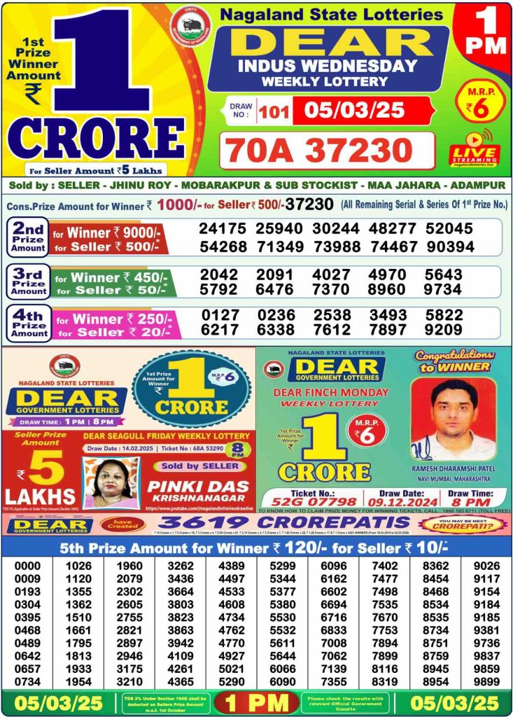 Sambad Lottery Day Result 6 PM 5.3.2025. Free download Nagaland Dear Lottery Sambad 6 PM Day Result Online. Lottery Sambad Day Result 6 PM 5-3-2025.