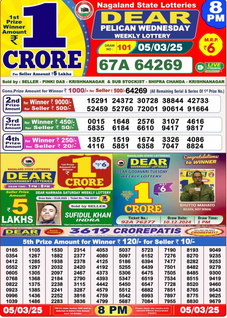 Daily Lottery Sambad Evening Result 8 PM 5/3/2025. Dear Lottery Sambad Evning Result 8 PM live online 5-3-2025. Nagaland Lottery Evening Result 5.3.2025. Lottery Sambad Result 5.3.2025.