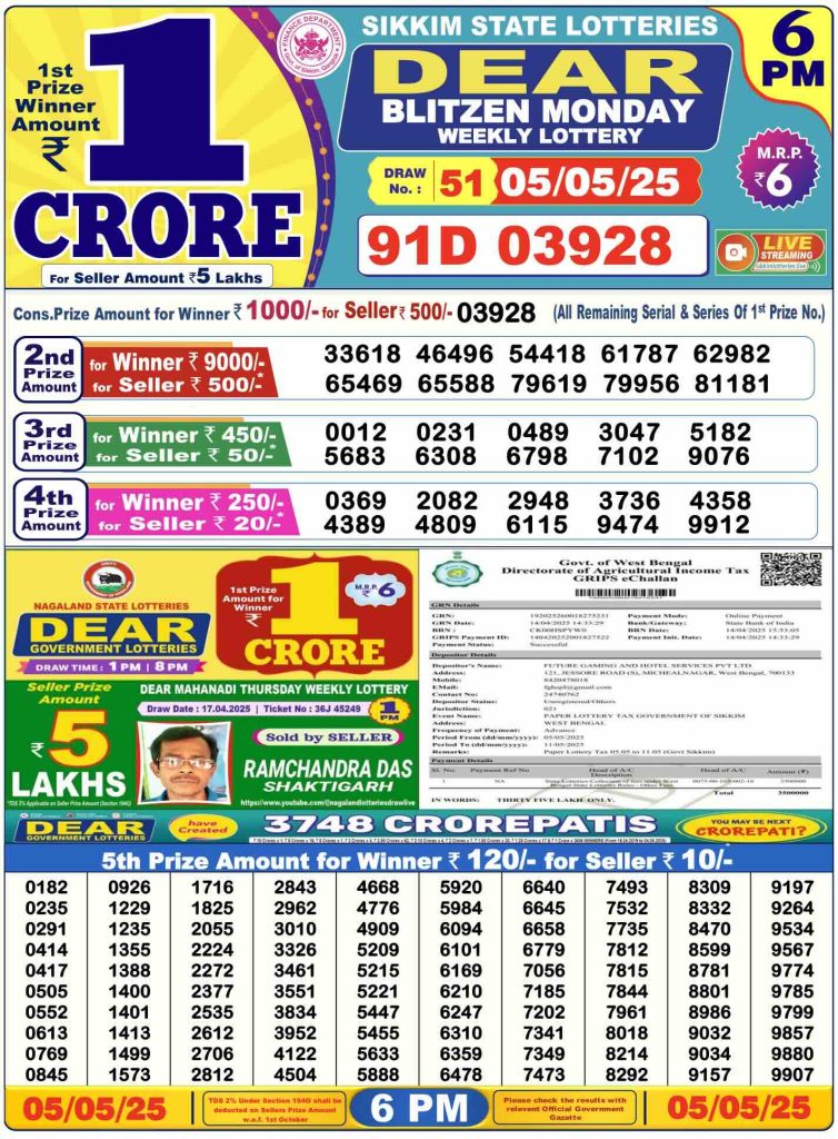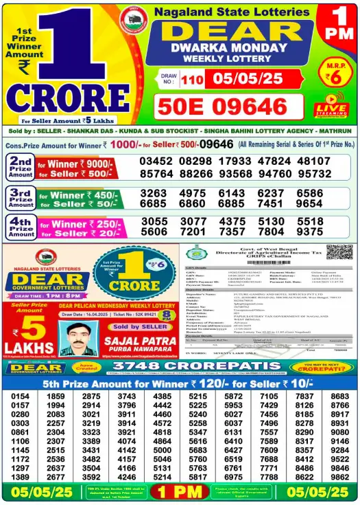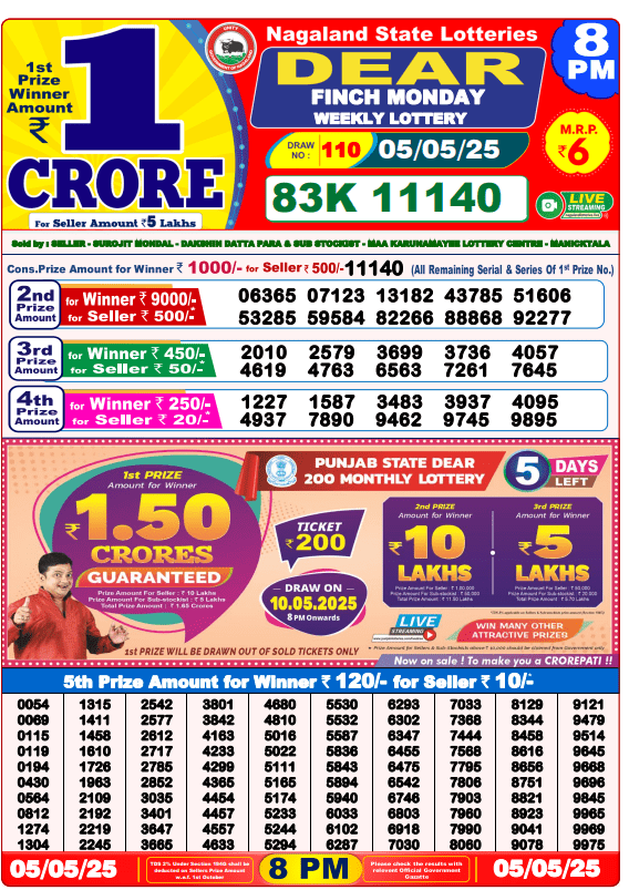 Sambad Lottery Day Result 6 PM 5.5.2025. Free download Nagaland Dear Lottery Sambad 6 PM Day Result Online. Lottery Sambad Day Result 6 PM 5.5.2025.