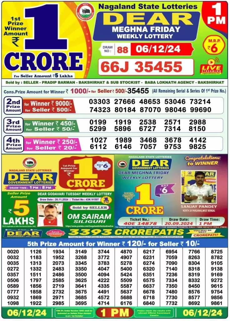 Sambad Lottery Morning Result 1 PM 6-12-2024. Check and free download Dear Lottery Sambad 1 PM Morning Result 6/12/2024. Nagaland Dear Lotery Sambad Result 1 PM 8.1.2023.