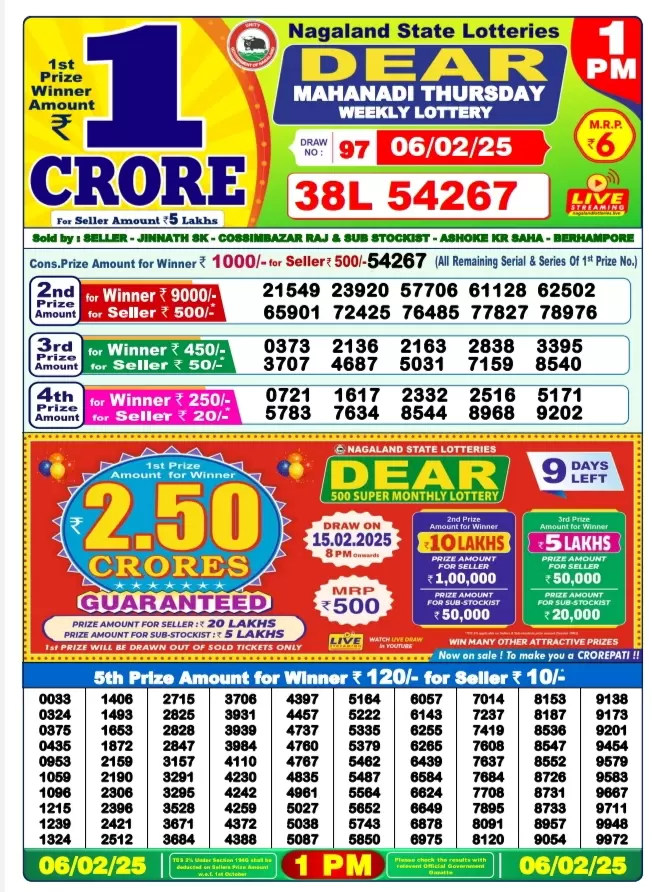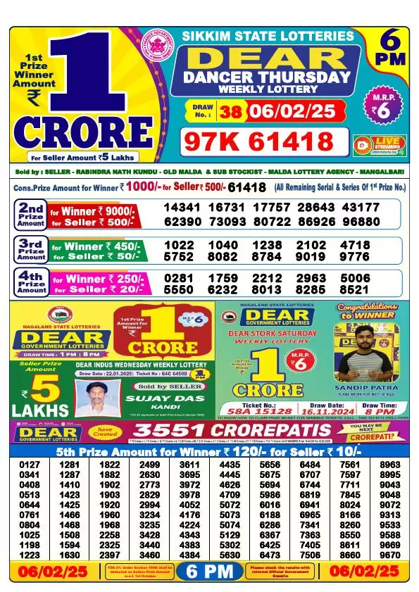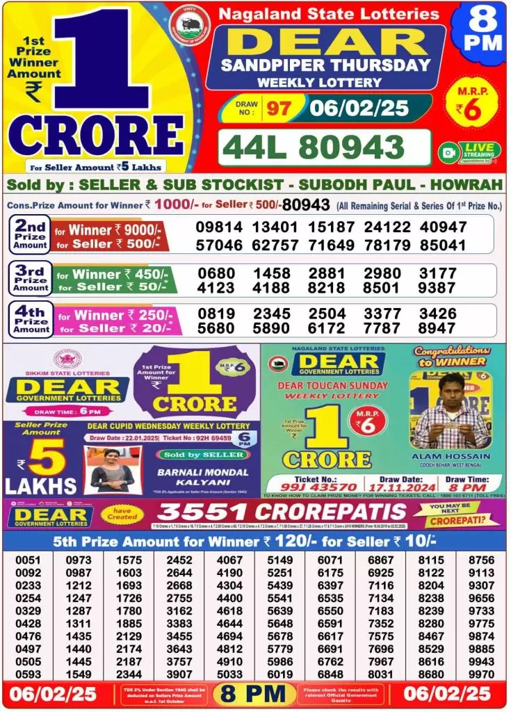 Sambad Lottery Day Result 6 PM 6.2.2025. Free download Nagaland Dear Lottery Sambad 6 PM Day Result Online. Lottery Sambad Day Result 6 PM 6-2-2025.
