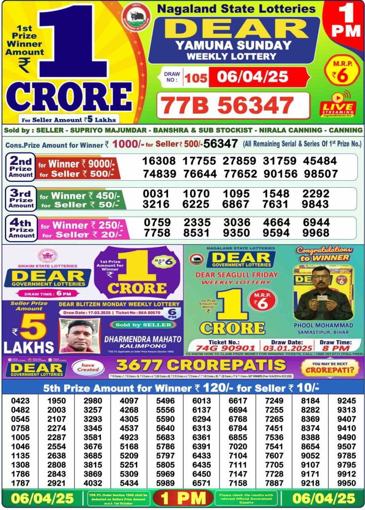 Sambad Lottery Morning Result 1 PM 6-4-2025. Check and free download Dear Lottery Sambad 1 PM Morning Result 6/4/2025. Nagaland Dear Lotery Sambad Result 1 PM 8.1.2023.