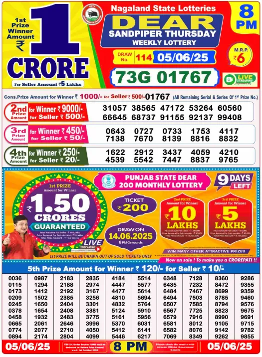 Sambad Lottery Day Result 6 PM 6.6.2025. Free download Nagaland Dear Lottery Sambad 6 PM Day Result Online. Lottery Sambad Day Result 6 PM 6.6.2025.