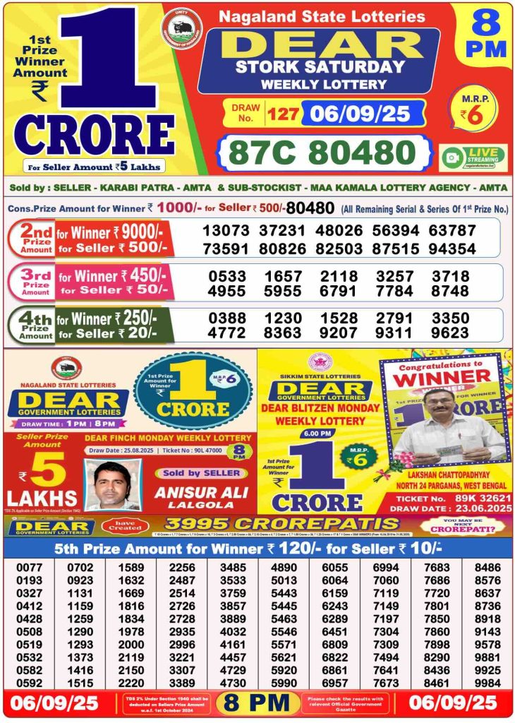 Daily Lottery Sambad Evening Result 8 PM 6/9/2025. Dear Lottery Sambad Evning Result 8 PM live online 6.9.2025. Nagaland Lottery Evening Result 6.9.2025. Lottery Sambad Result 6.9.2025.