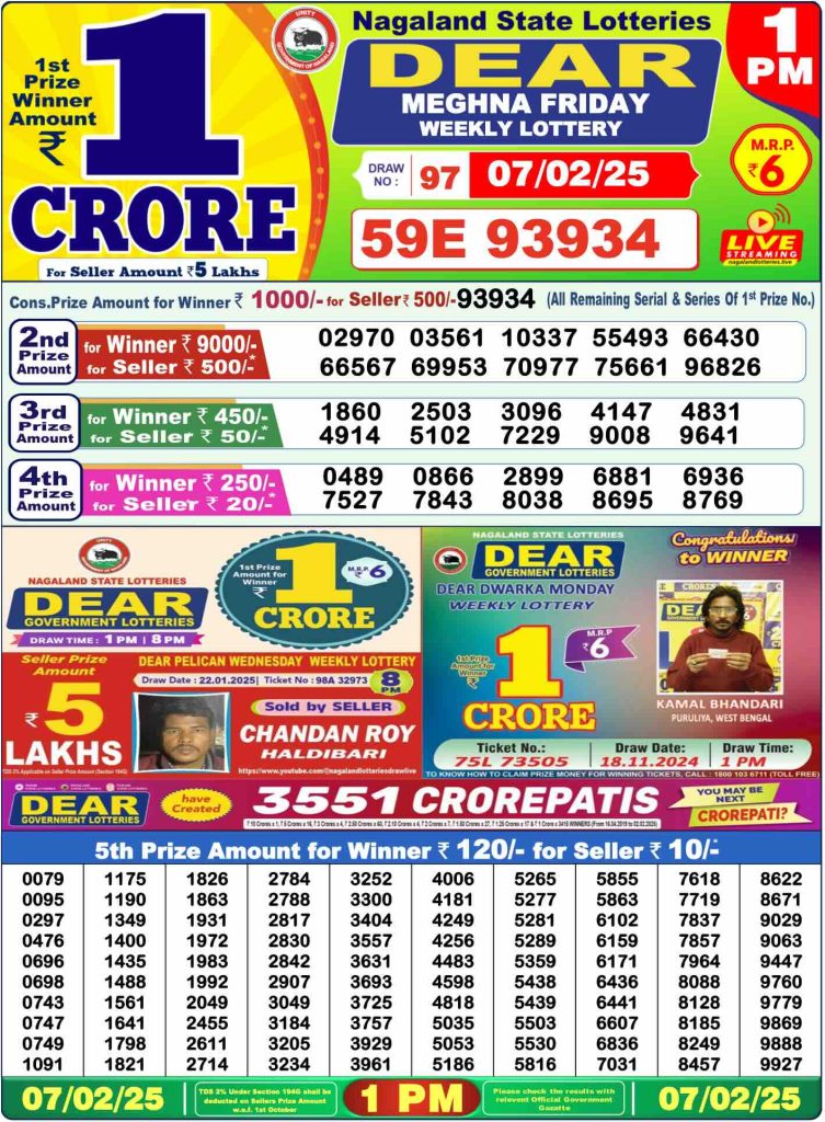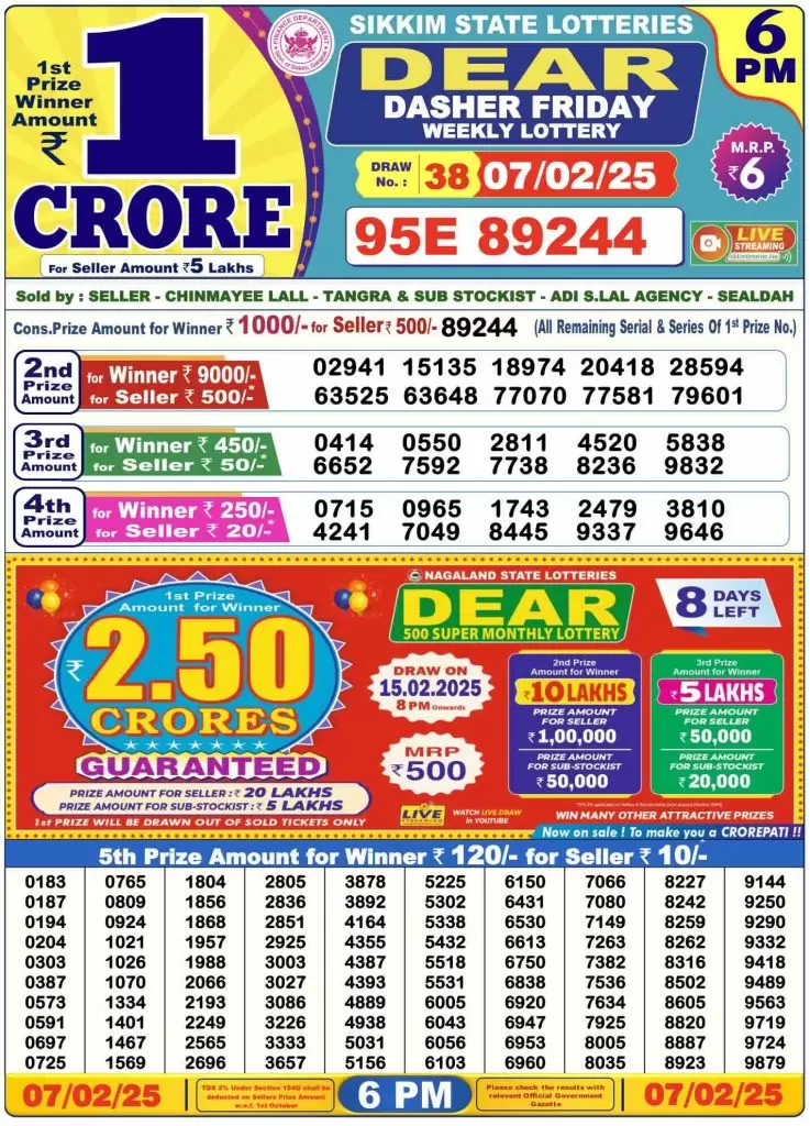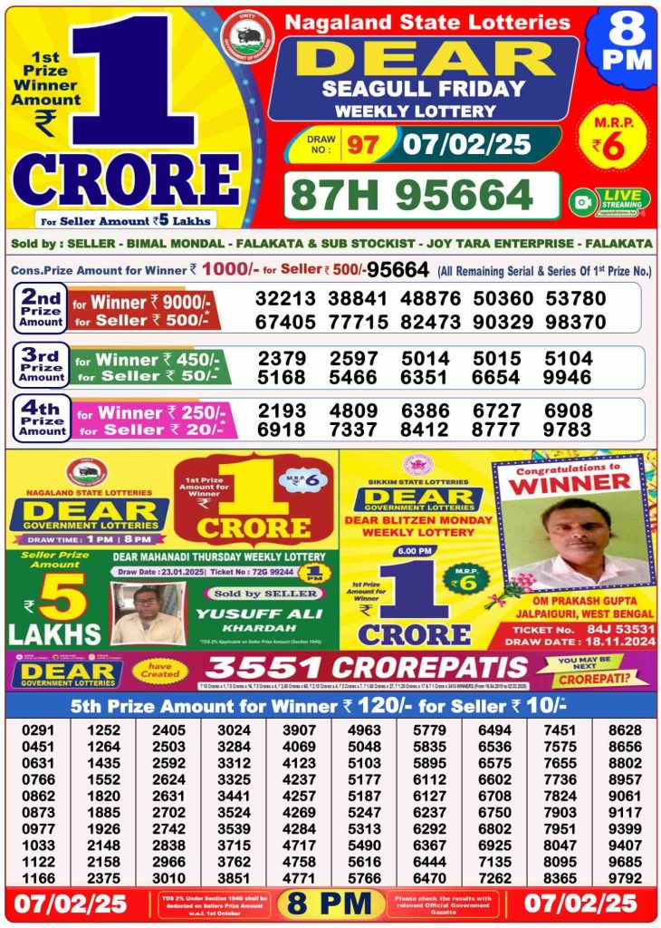 Daily Lottery Sambad Evening Result 8 PM 7/2/2025. Dear Lottery Sambad Evning Result 8 PM live online 7-2-2025. Nagaland Lottery Evening Result 7.2.2025. Lottery Sambad Result 7.2.2025.
