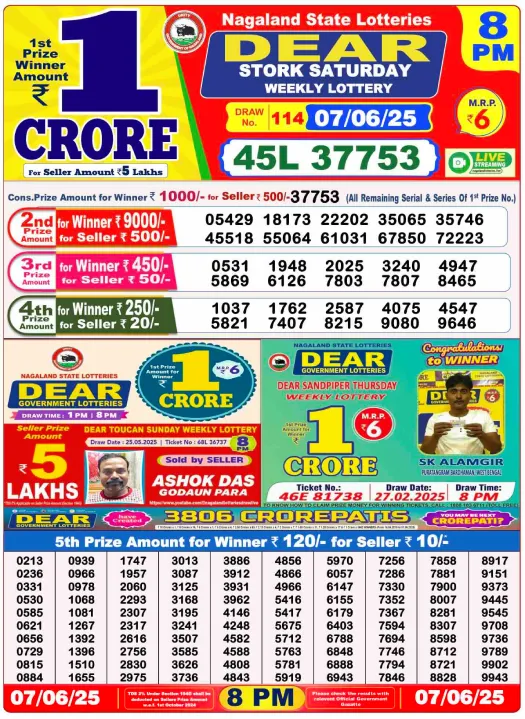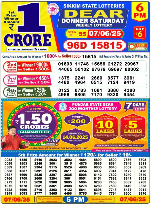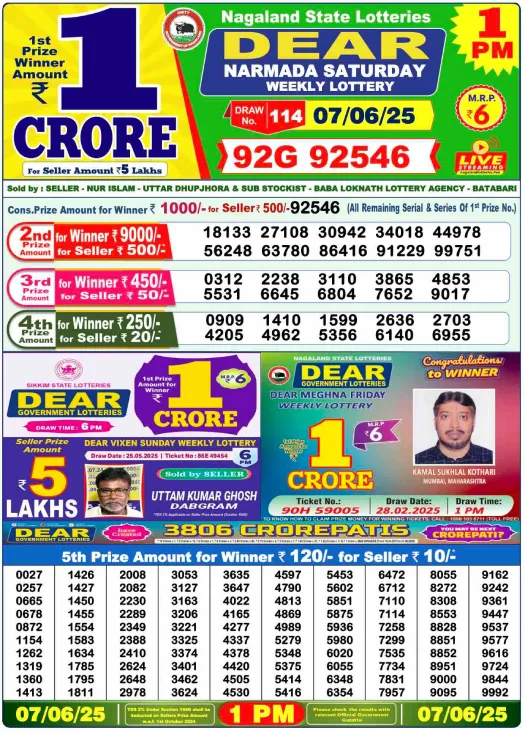 Sambad Lottery Day Result 6 PM 7.6.2025. Free download Nagaland Dear Lottery Sambad 6 PM Day Result Online. Lottery Sambad Day Result 6 PM 7.6.2025.