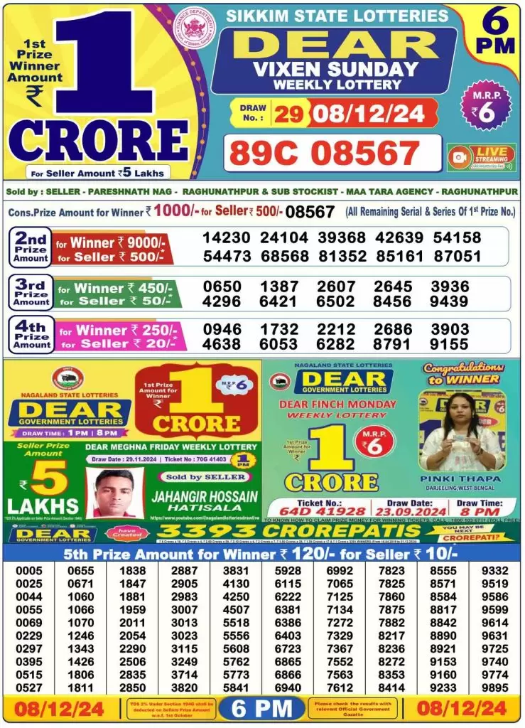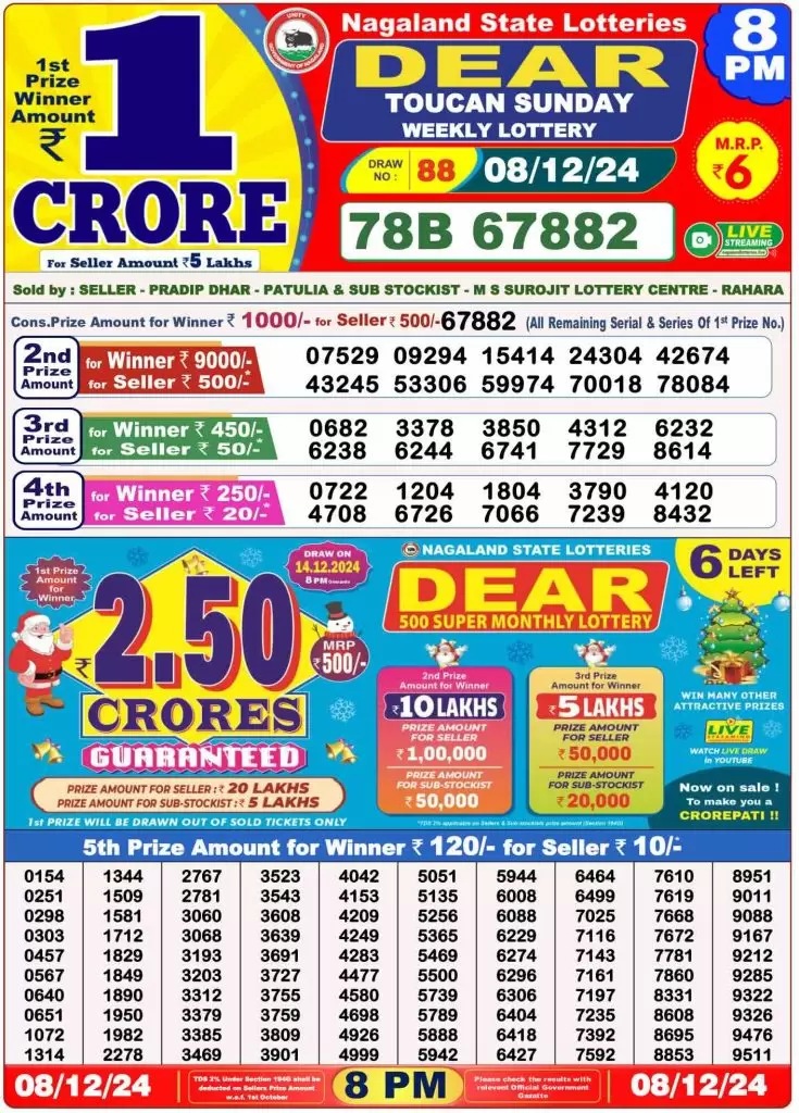 Sambad Lottery Day Result 6 PM 8.12.2024. Free download Nagaland Dear Lottery Sambad 6 PM Day Result Online. Lottery Sambad Day Result 6 PM 8-12-2024.