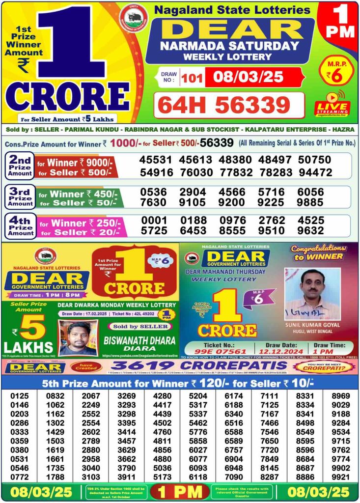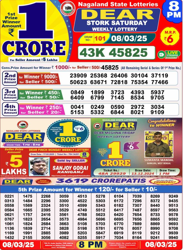 Sambad Lottery Day Result 6 PM 8.3.2025. Free download Nagaland Dear Lottery Sambad 6 PM Day Result Online. Lottery Sambad Day Result 6 PM 8-3-2025.