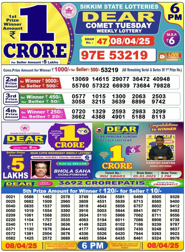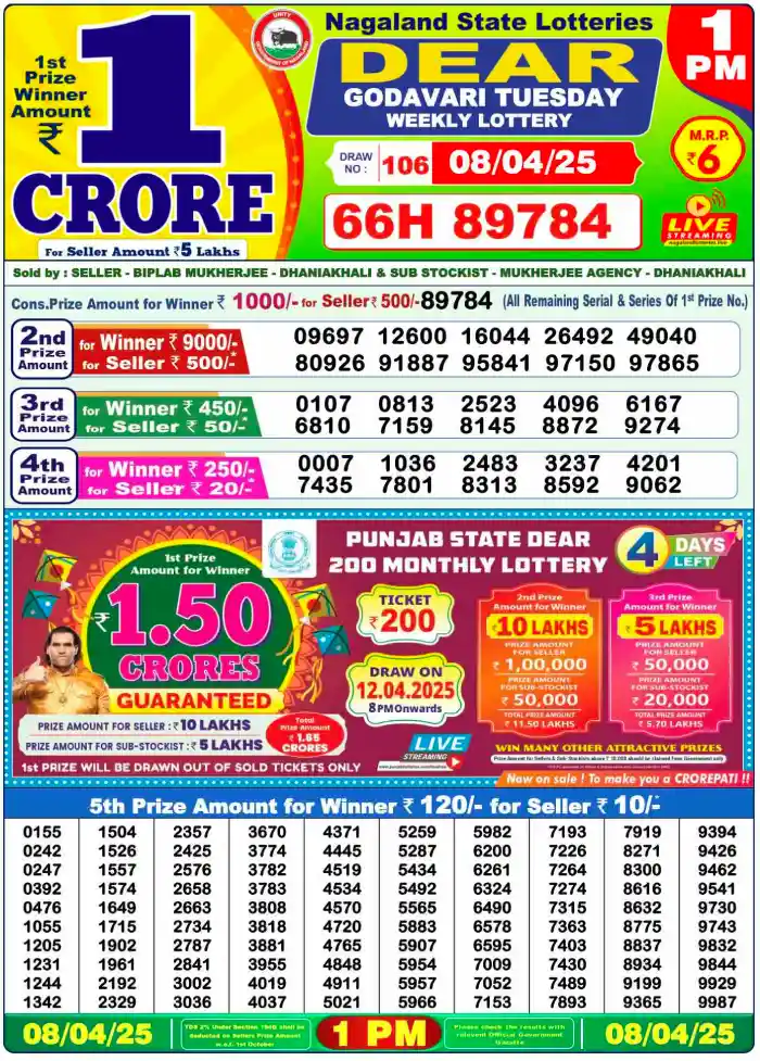 Sambad Lottery Day Result 6 PM 8.4.2025. Free download Nagaland Dear Lottery Sambad 6 PM Day Result Online. Lottery Sambad Day Result 6 PM 8-4-2025.