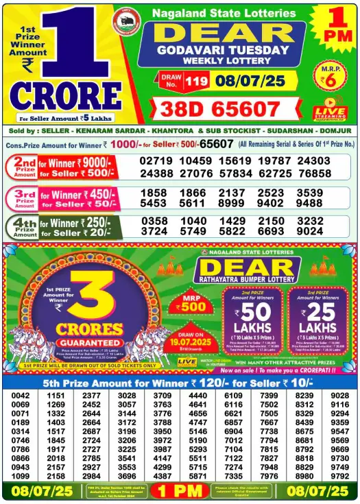 Sambad Lottery Morning Result 1 PM 8.7.2025. Check and free download Dear Lottery Sambad 1 PM Morning Result 8/7/2025. Nagaland Dear Lotery Sambad Result 1 PM 8.1.2023.