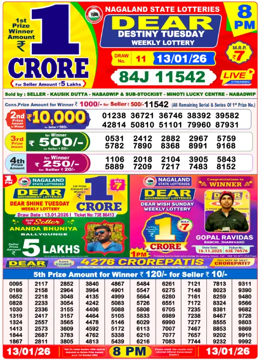 Lottery Sambad 8 PM Result 13/1/2026. If you’re an avid player of Lotteries, you must always be in search of a lottery which has the highest payout ratio and offers hundreds and thousands in cash as jackpot wins.