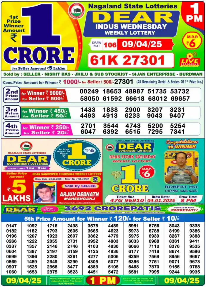 Sambad Lottery Day Result 6 PM 9.4.2025. Free download Nagaland Dear Lottery Sambad 6 PM Day Result Online. Lottery Sambad Day Result 6 PM 9-4-2025.
