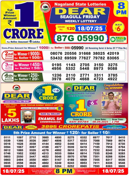 Daily Lottery Sambad Evening Result 8 PM 18/7/2025. Dear Lottery Sambad Evning Result 8 PM live online 18.7.2025. Nagaland Lottery Evening Result 18.7.2025. Lottery Sambad Result 18.7.2025.