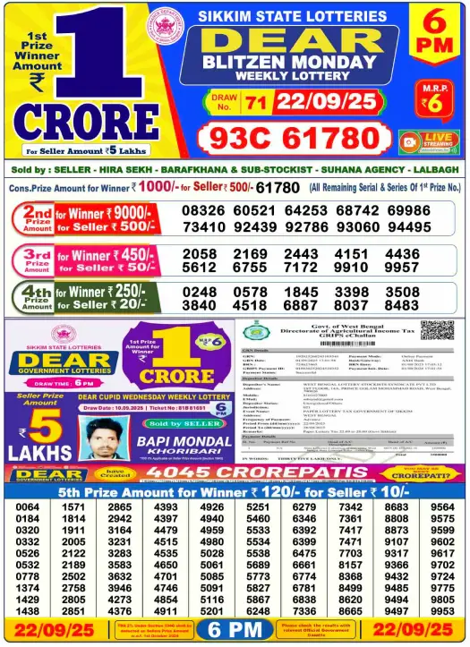 Sambad Lottery Today Result 22.9.2025 (6 PM) |