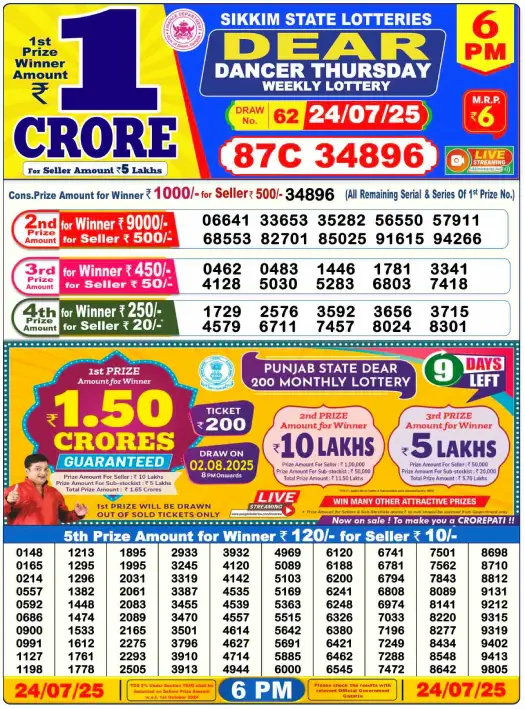 Dear Lottery Sambad Today Result 6 PM