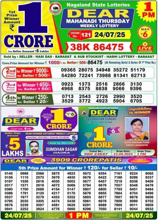 Sambad Lottery Morning Result 1 PM 24.7.2025. Check and free download Dear Lottery Sambad 1 PM Morning Result 24/7/2025. Nagaland Dear Lotery Sambad Result 1 PM 8.1.2023.