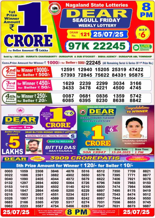 Daily Lottery Sambad Evening Result 8 PM 25/7/2025. Dear Lottery Sambad Evning Result 8 PM live online 25.7.2025. Nagaland Lottery Evening Result 25.7.2025. Lottery Sambad Result 25.7.2025.