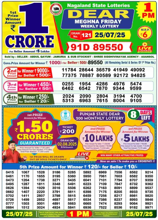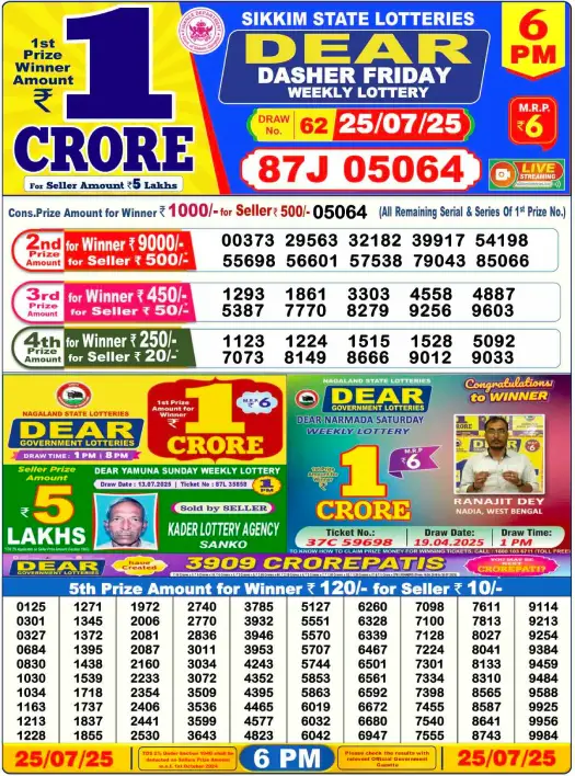 Sambad Lottery Day Result 6 PM 25.7.2025. Free download Nagaland Dear Lottery Sambad 6 PM Day Result Online. Lottery Sambad Day Result 6 PM 25.7.2025.