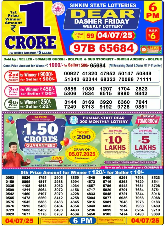 Sambad Lottery Today Result 4.7.2025 (6 PM) |